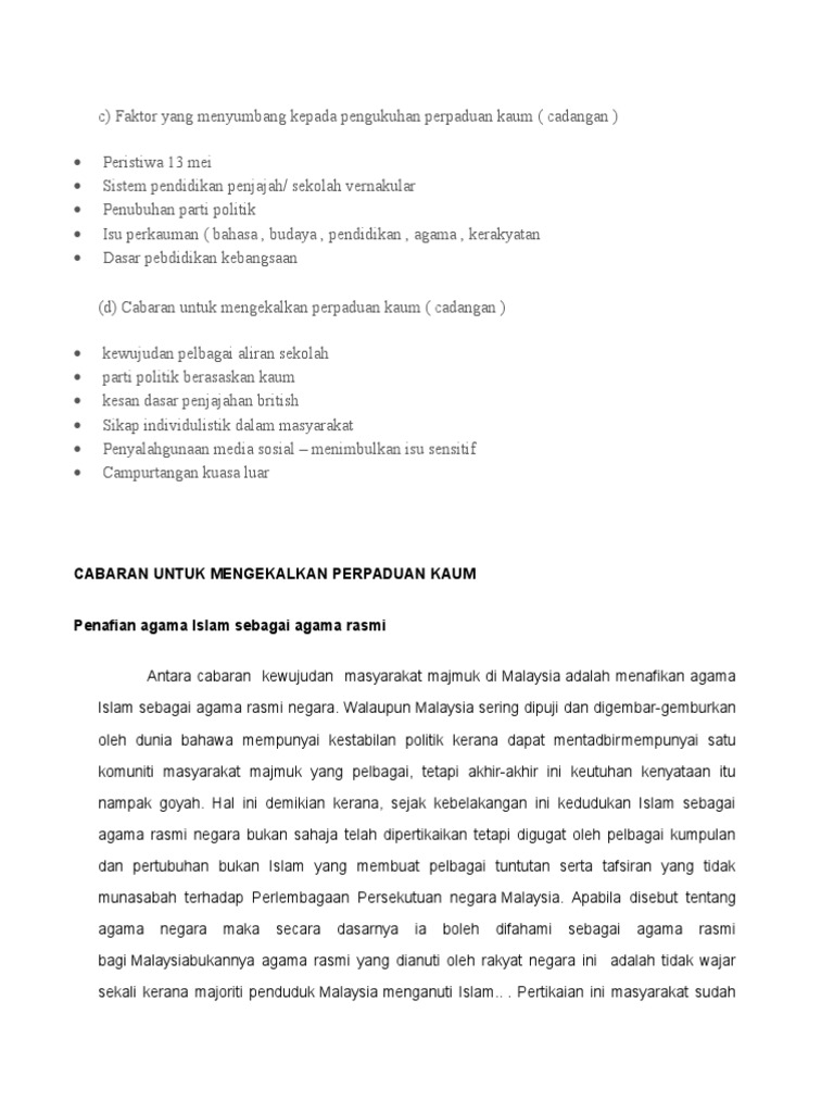 Cabaran Memupuk Perpaduan Kaum Cabaran Cabaran Dalam Merealisasikan Keharmonian Hubungan Kaum Di Malaysia Demi Menyatupadukan Sebuah Negara Yang Course Hero