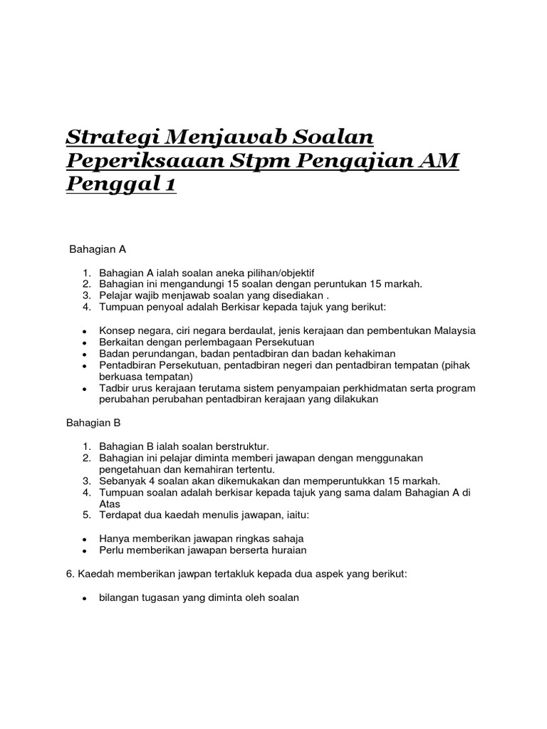 Strategi Menjawab Soalan Peperiksaaan Stpm Pengajian Am Penggal 1