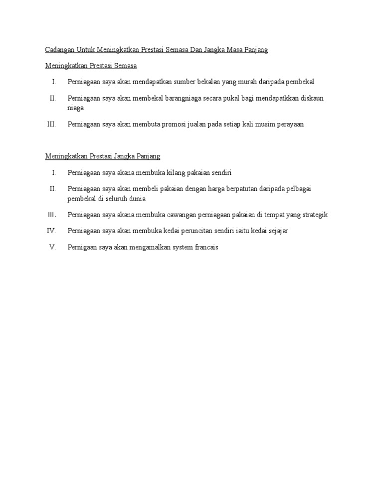 Cadangan Untuk Meningkatkan Prestasi Semasa Dan Jangka Panjang Download Documents