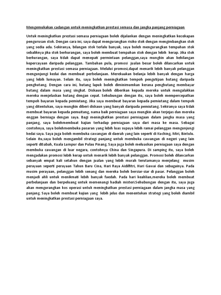 Mengemukakan Cadangan Untuk Meningkatkan Prestasi Semasa Dan Jangka Panjang Perniagaan Folio Spm 2011