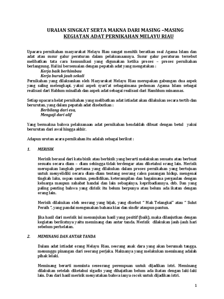 Doc Cara Meminang Adat Melayu 1 Uraian Singkat Serta Makna Dari Masing Bukhori Lubis Academia Edu