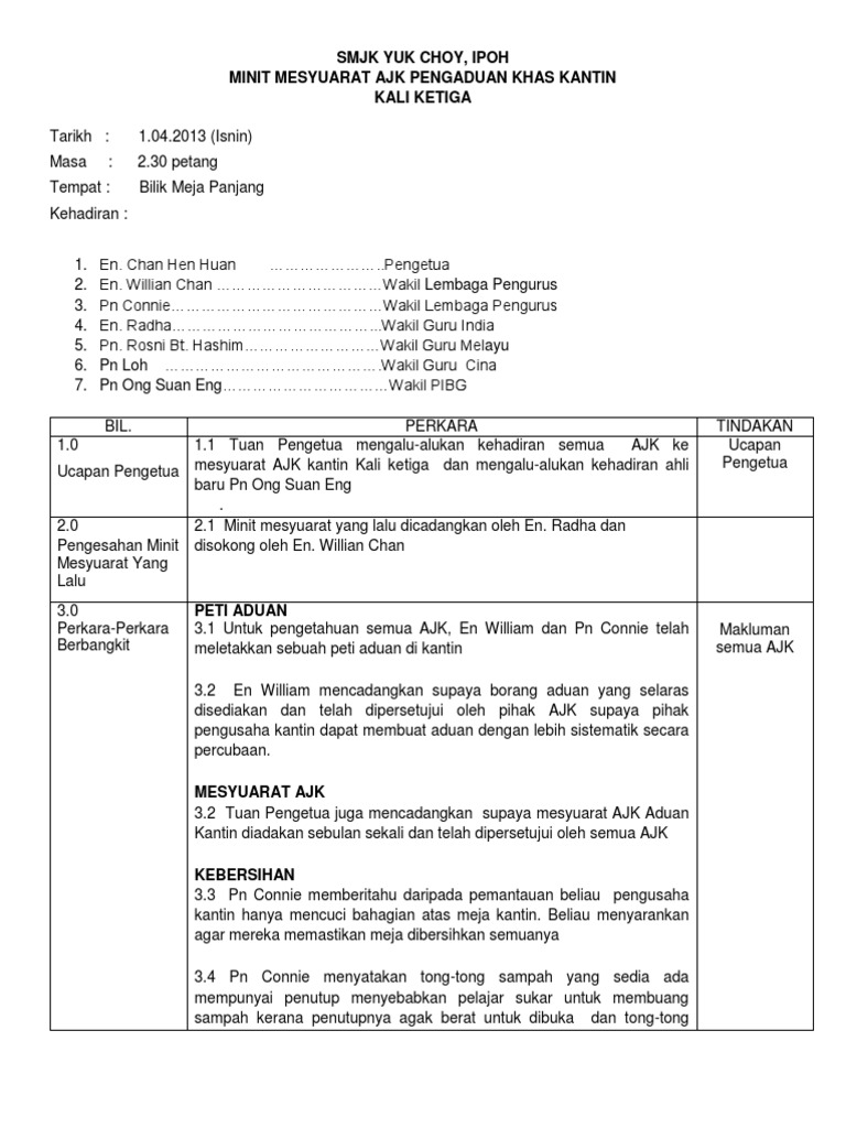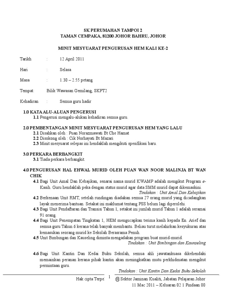 Format Minit Mesyuarat Yang Betul Pendidik2u Format Yang Personalized Items