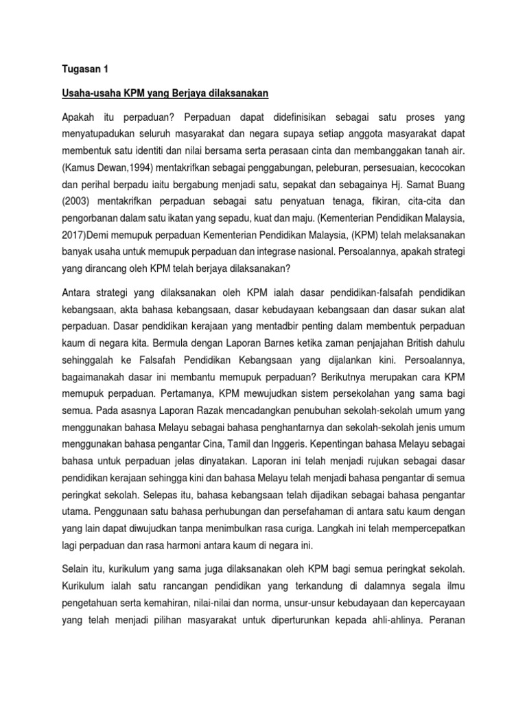 Doc Kepentingan Perpaduan Kaum Zalina Husain Academia Edu