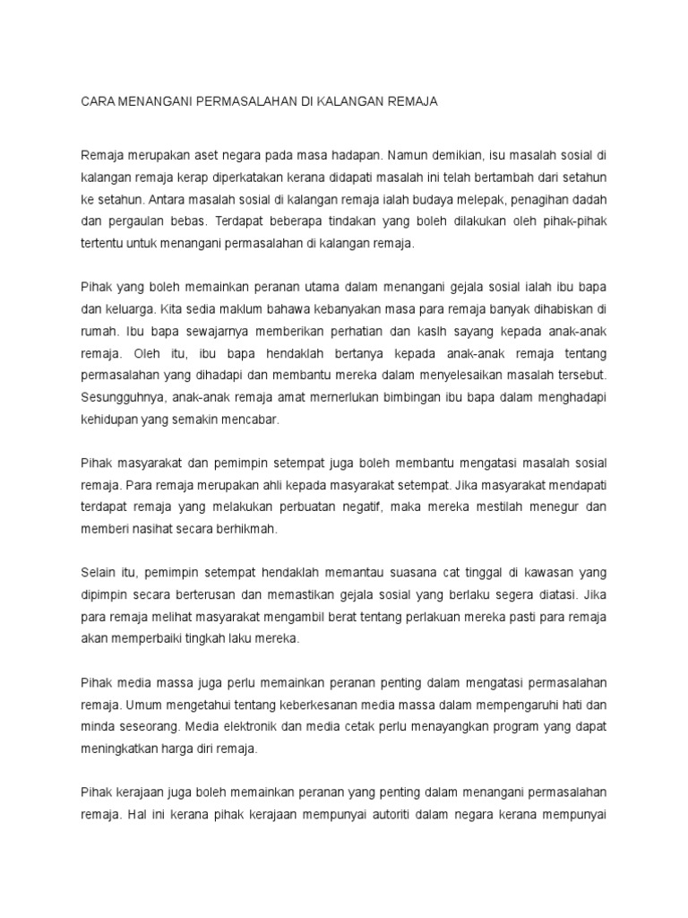 Bahasa Melayu Smk Taman Megah Ria Isi Dan Huraian Langkah Langkah Masyarakat Menangani Masalah Gejala Sosial Remaja