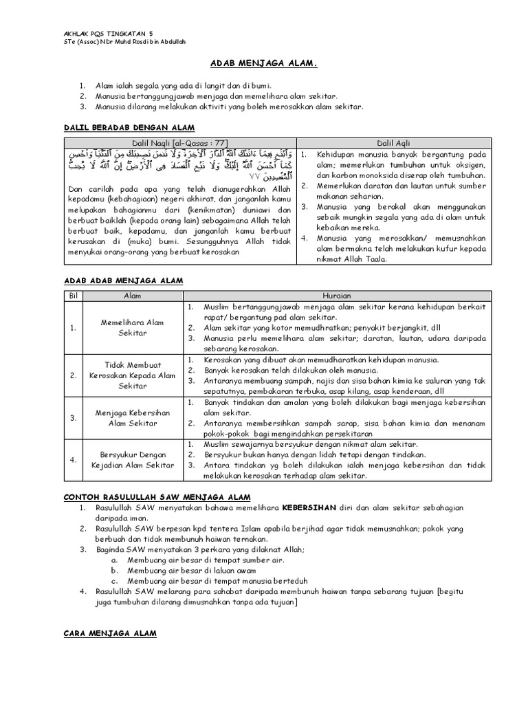 Pendidikan Islam Tingkatan 5 Adab Memelihara Alam Sekitar