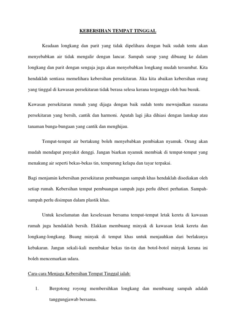 Doc Karangan Bahagian A Cara Cara Menjaga Kebersihan Sekolah Unit Kurikulum Academia Edu