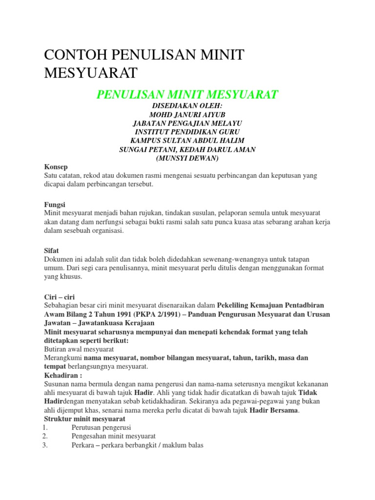 Doc Format Baru Penulisan Minit Mesyuarat Alias Che Ya Academia Edu