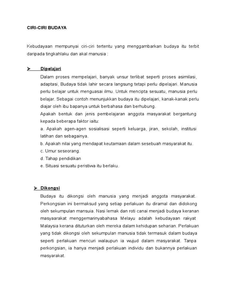 Ciri Ciri Budaya