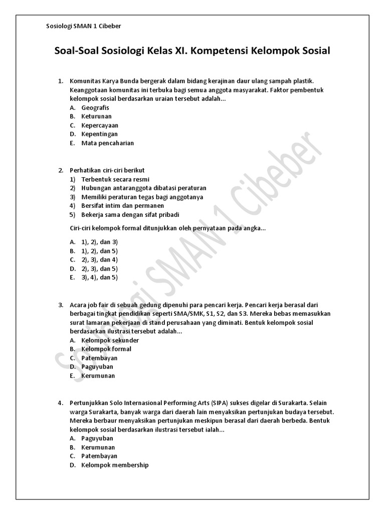 Soal Soal Sosiologi Kelas Xi Kompetensi Kelompok Sosial