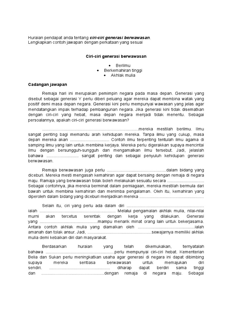 Karangan Spm Generasi Berwawasan