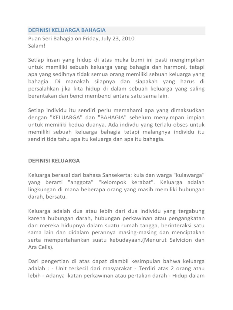 Definisi Keluarga Bahagia