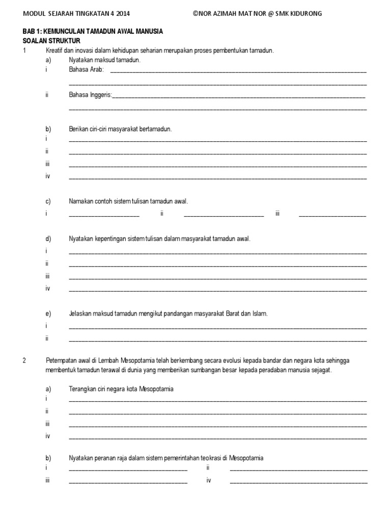 Pdf Sejarah Tingkatan 4 B A B 1 T A M A D U N A W A L M A N U S I A Imran Nor Academia Edu
