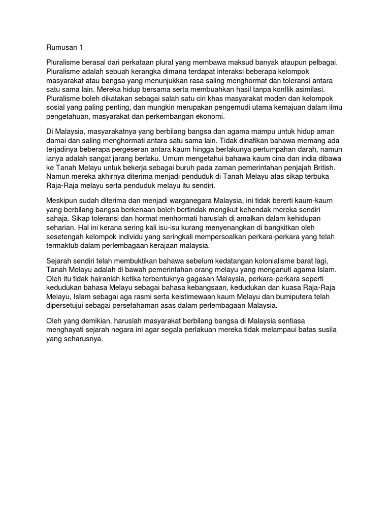 Ciri Ciri Masyarakat Majmuk Di Malaysia Rumusan