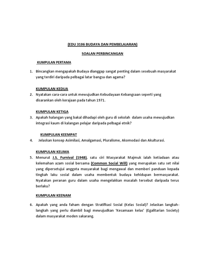 Edu 3106 Budaya Dan Pembelajaran Soalan Perbincangan Kumpulan Pertama