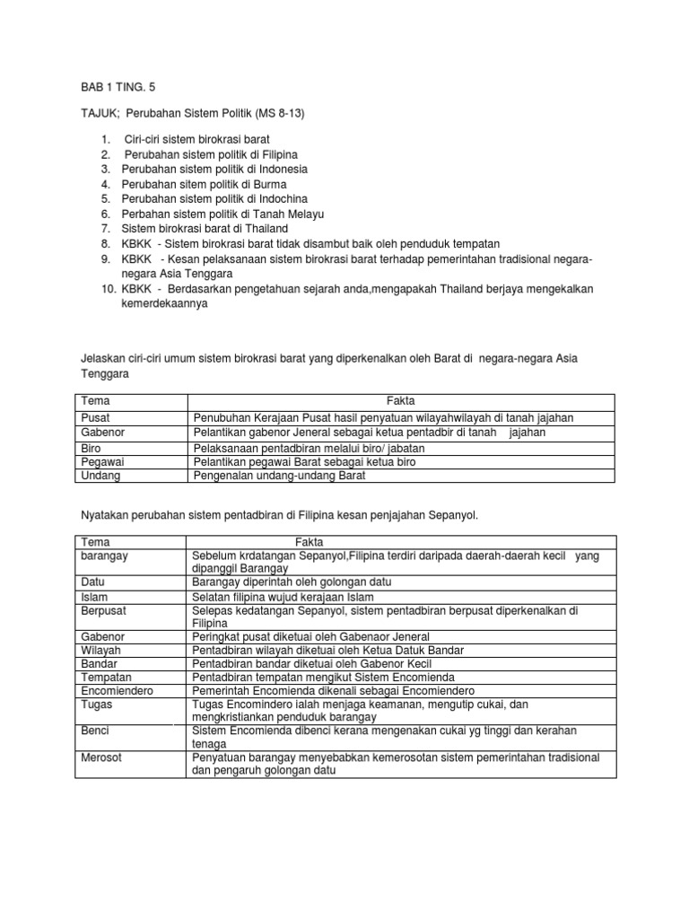 Nota Sejarah Tingkatan 5