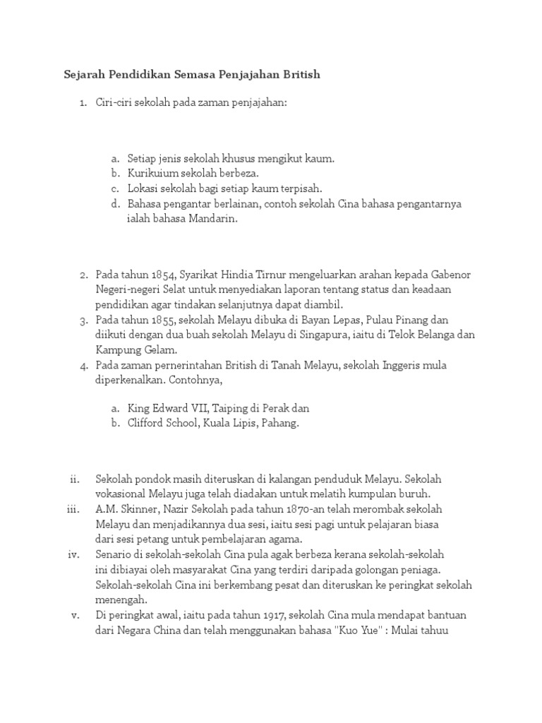 Sejarah Pendidikan Semasa Penjajahan British Docx Document