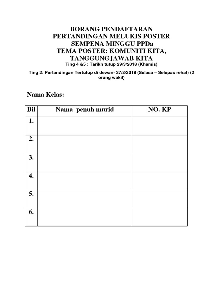 Contoh Borang Penyertaan Dan Pemarkahan Doc Document
