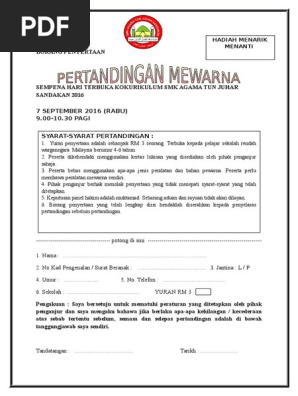 Borang Penyertaan Bagi Pertandingan Mewarna Borang Peborang Penyertaan Bagi Pertandingan Mewarna Terbuka Kepada Murid Murid Sekolah Rendah Pada 1 November 2014 Bersamaan Hari Pdf Document