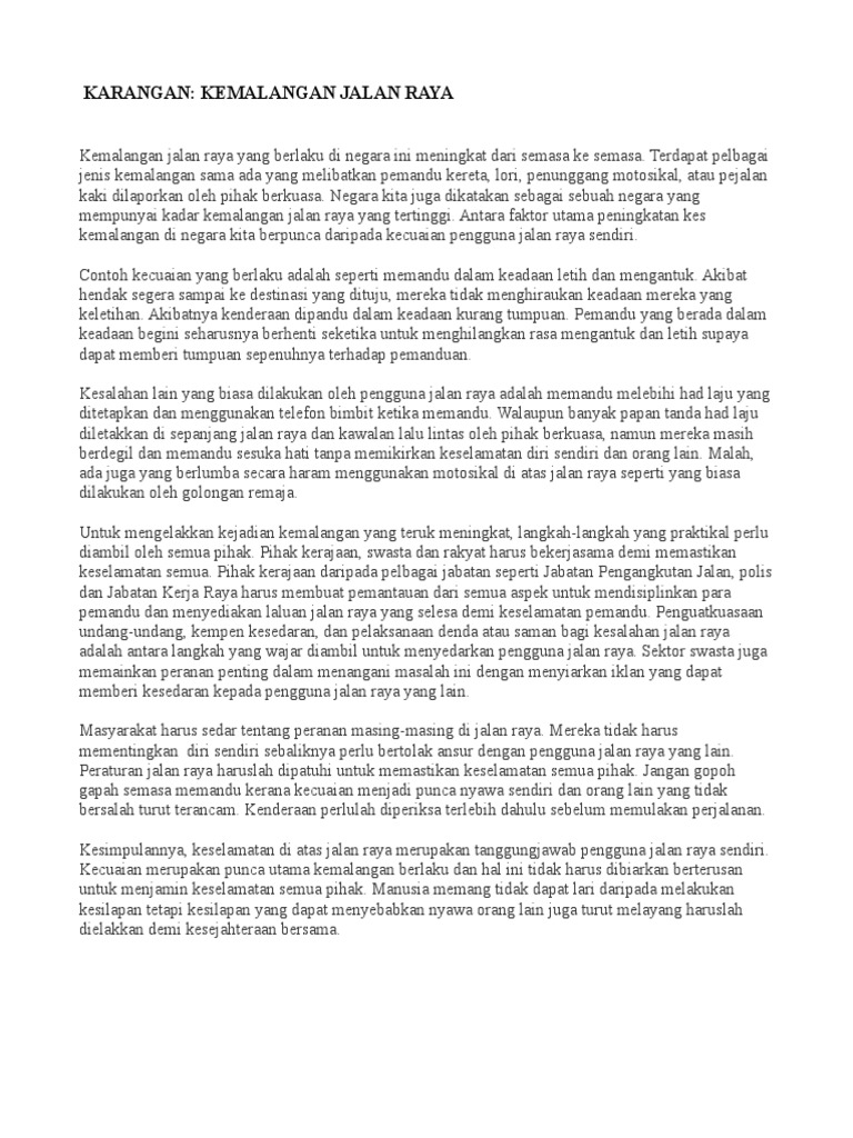 Karangan Langkah Langkah Mengurangkan Kemalangan Jalan Raya