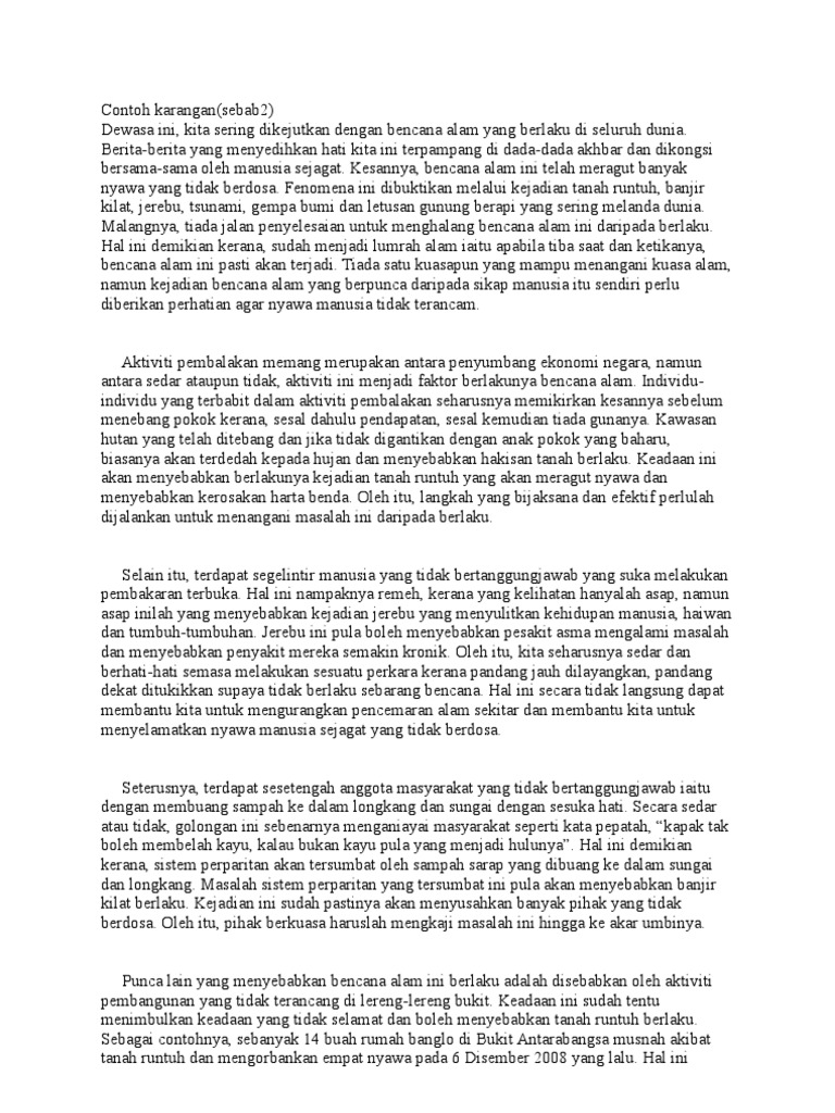 Jenis punca kesan dan cara mengatasi pencemaran alam sekitar. Sebagai contoh saban tahun negara kita dilanda jerebu yang teruk berpunca daripada sikap masyarakat yang gemar melakukan pembakaran terbuka. Contoh karangan lengkap punca punca pencemaran udara pencemaran udara merupakan perbuatan mengotorkan kebersihan udara sehingga menyebabkan kualitinya merosot t. Punca punca pencemaran alam kegiatan perusahaan atau perkilangan asap asap kilang meyebabkan pencemaran udara dan sisa sisa pembuangan toksid menyebabkan.
