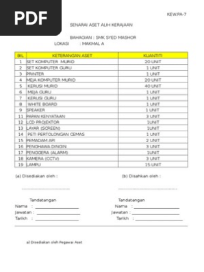 Kew Pa 1 Borang Laporan Penerimaan Aset Alih Kerajaan