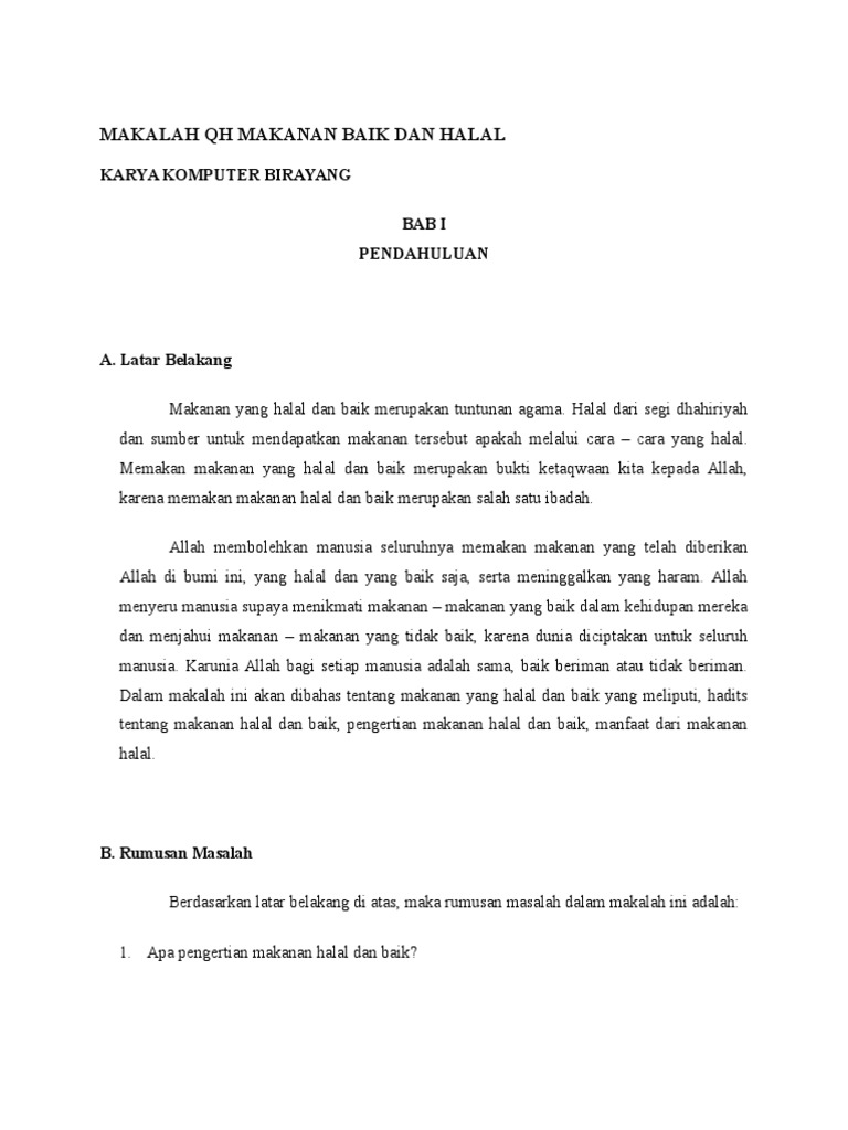 Doc Makalah Makanan Yang Halal Dan Baik Khaira Alfatih Academia Edu