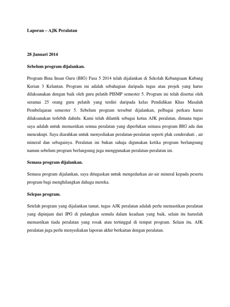Doc Contoh Format Laporan Aktiviti Kursus Kokurikulum Berkredit Nur Nabilah Academia Edu