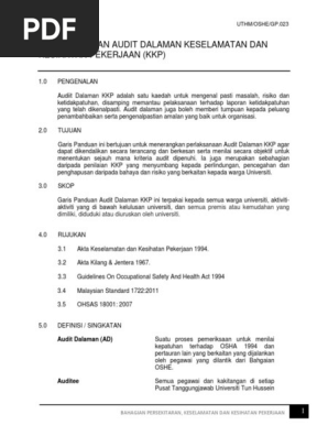 Garis Panduan Audit Dalaman Keselamatan Dan Kesihatan Pekerjaan Kkp
