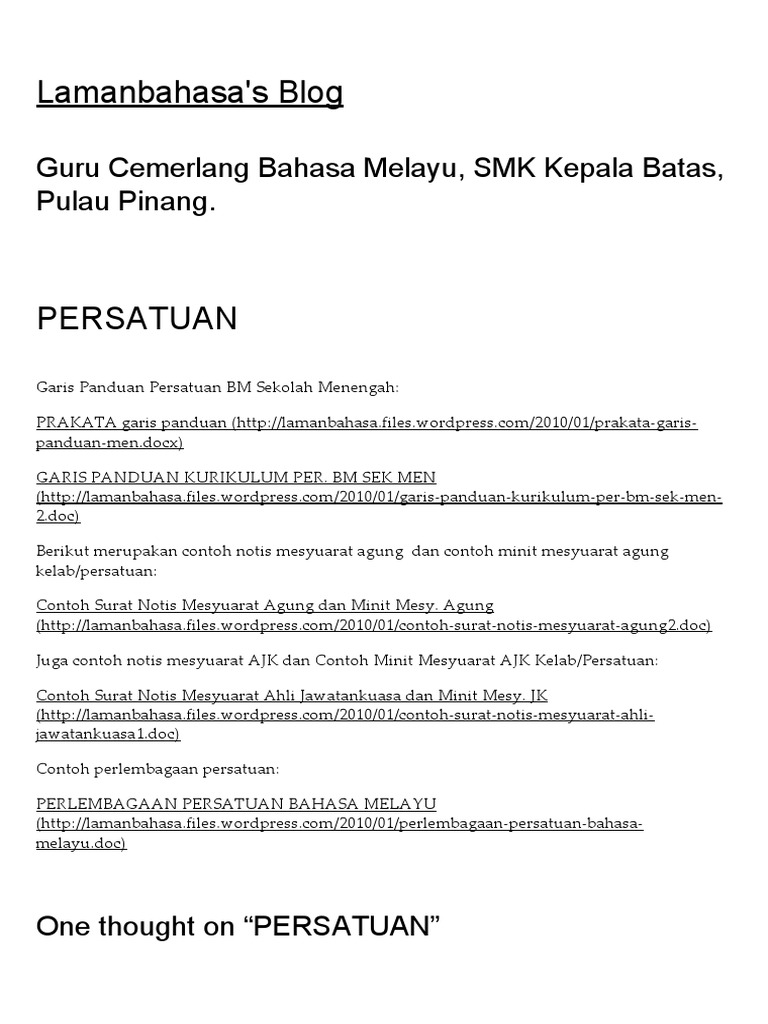 Contoh Minit Mesyuarat Agung Persatuan Bahasa Melayu