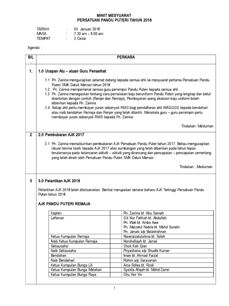Doc Contoh Minit Mesyuarat Ajk Persatuan Bahasa Melayu Etiesha Rais Academia Edu