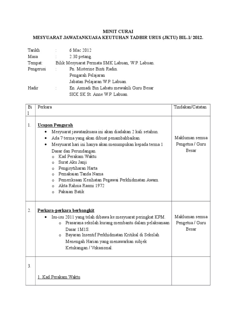 Contoh Minit Mesyuarat Mudah Dan Lengkap Jawatan Kosong