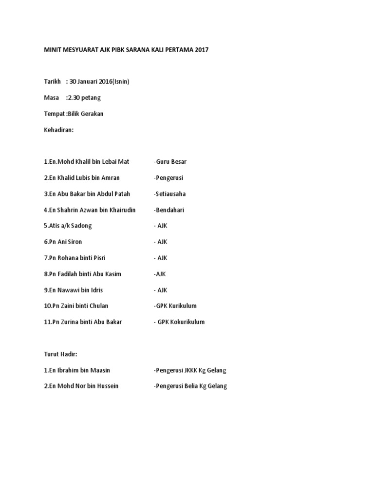 Contoh Minit Mesyuarat Mudah Dan Lengkap Jawatan Kosong