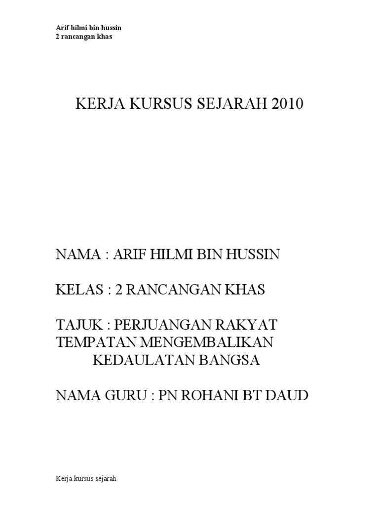 Contoh Kerja Kursus Sejarah Tingkatan 6 Penggal 2 2015 Cute766