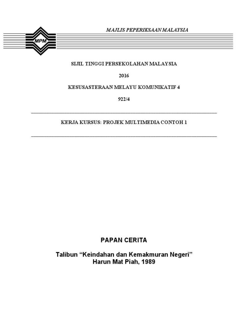 Sinopsis Kerja Kursus Multimedia Doc Majlis Peperiksaan Malaysia Sijil Tinggi Persekolahan Malaysia 2020 922 4 Kesusasteraan Melayu Komunikatif 4 Course Hero