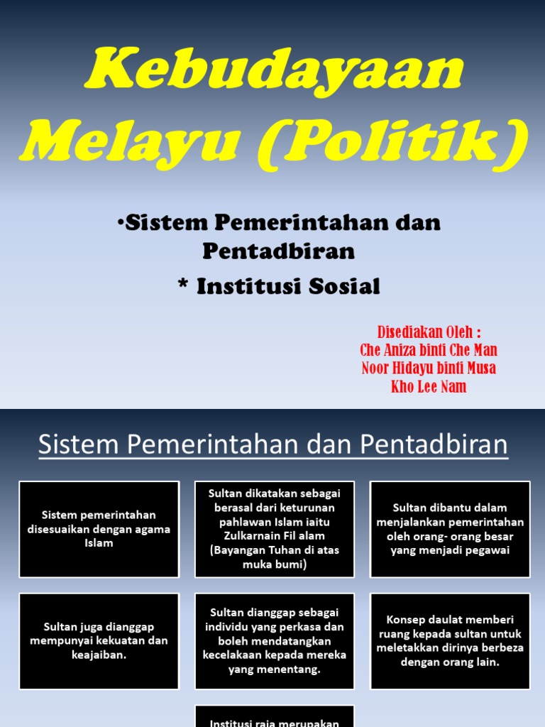 Kebudayaan Melayu Politik Sistem Pemerintahan Dan Pentadbiran Institusi Sosial