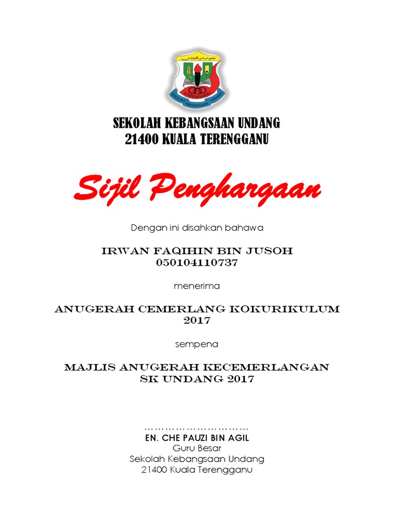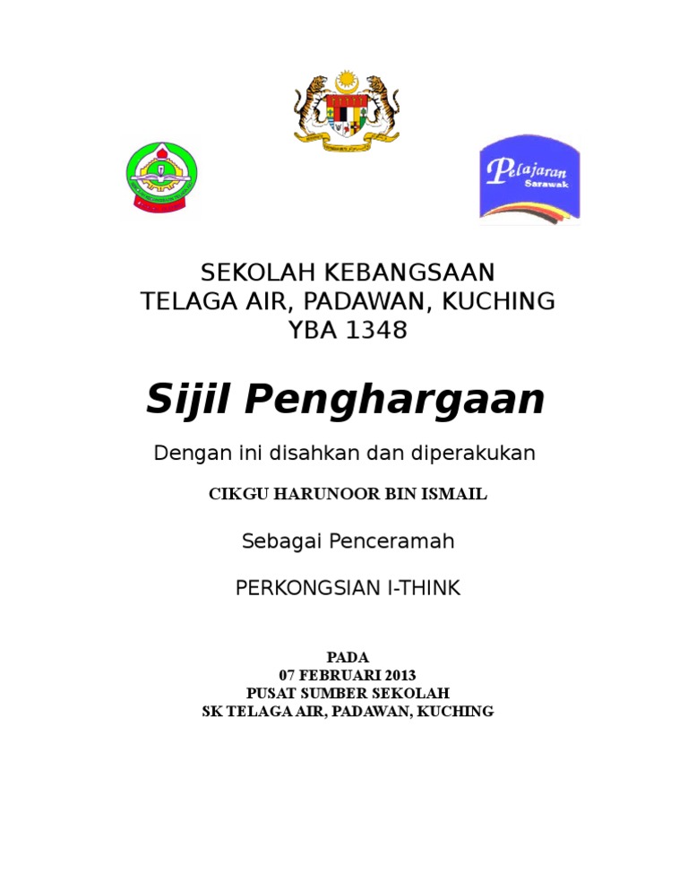 Contoh Sijil Penghargaan Docx