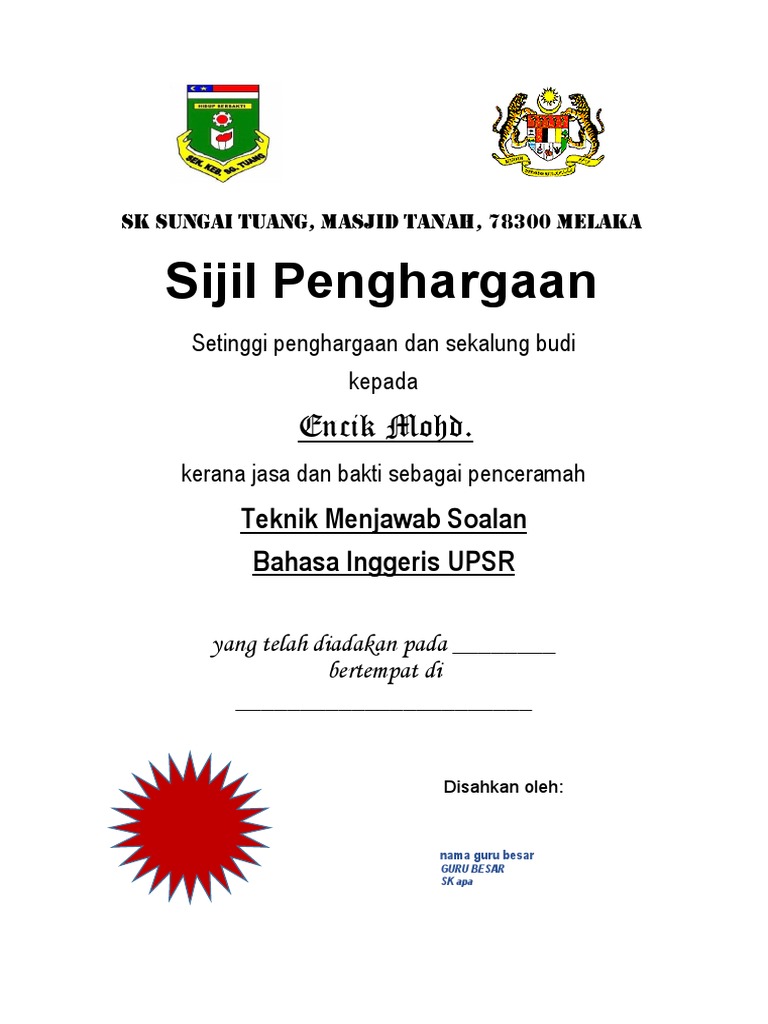 Contoh Sijil Penghargaan Perasmi Docx