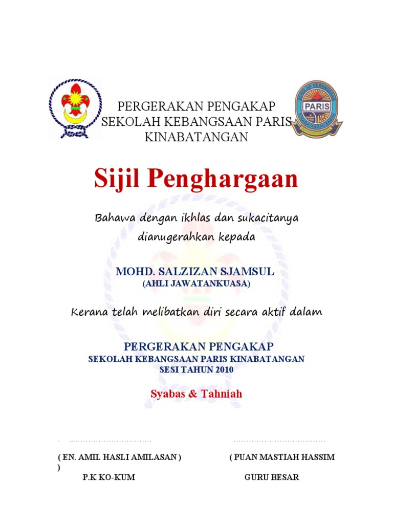 Contoh Sijil Pengakap Skparis