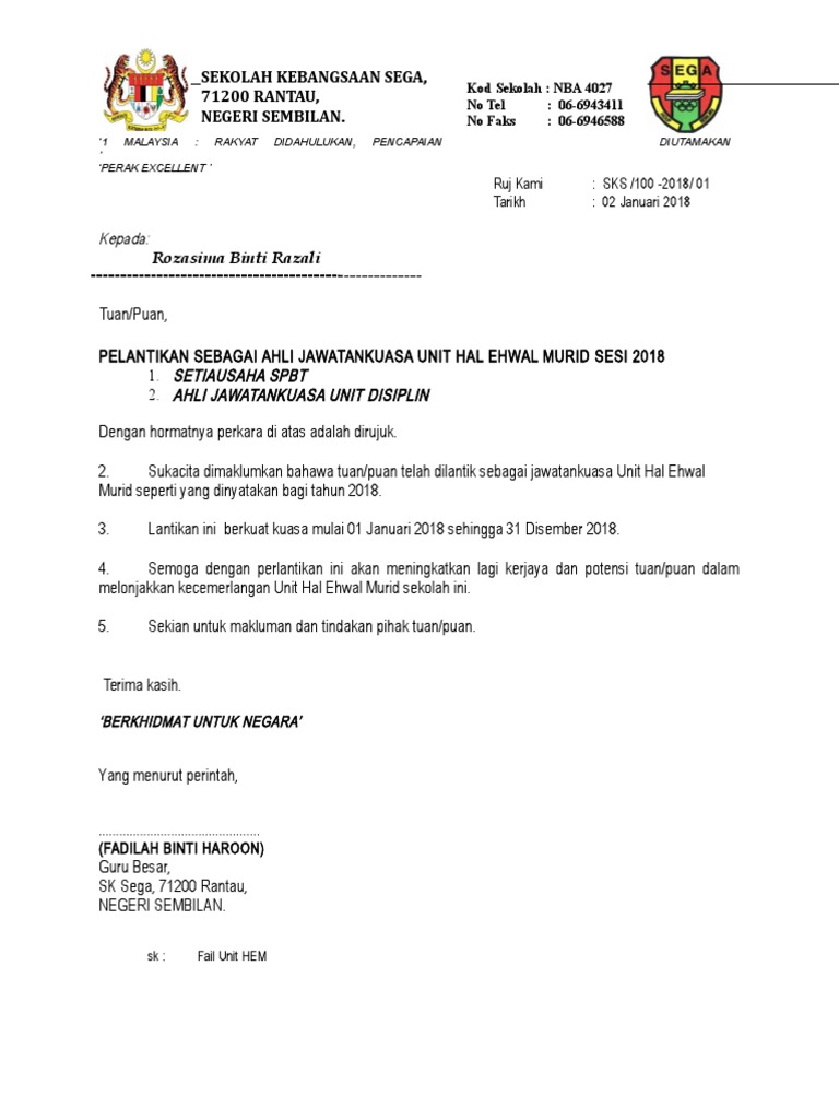 Ahli Jawatankuasa Contoh Surat Pelantikan Jawatan