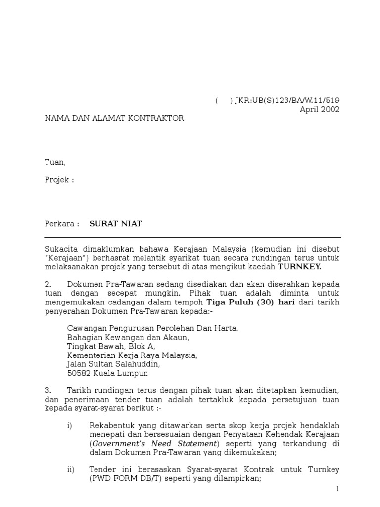 Surat Rasmi Tawaran Kerja Kontrak Kuora M