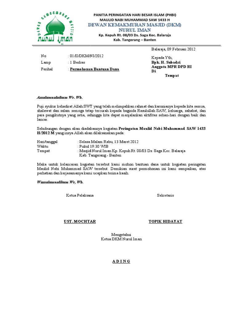 Contoh Surat Permohonan Bantuan Dana Kegiatan Maulid