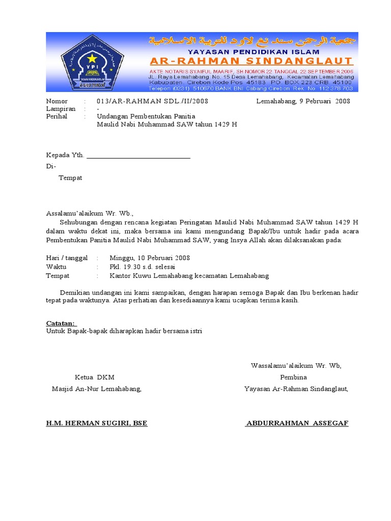 Doc Surat Undangan Maulid Nabi Muhammad Saw Yulius Gocar2017 Academia Edu