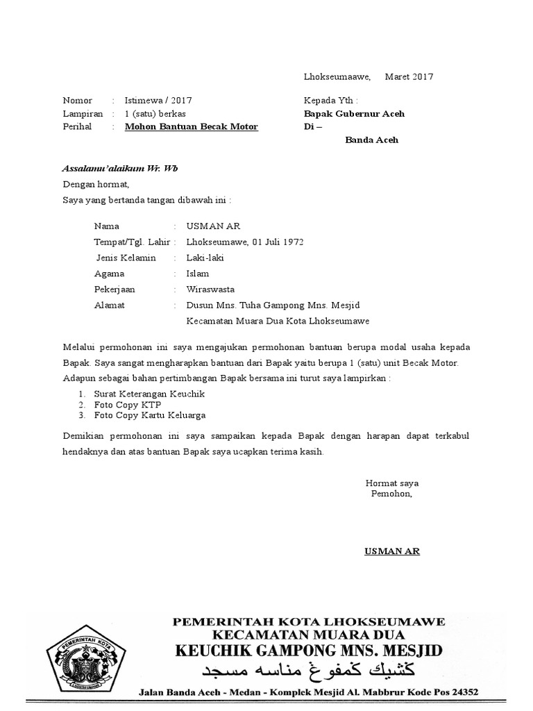 Contoh Surat Permohonan Bantuan Modal Usaha Ke Baznas Bagikan Contoh
