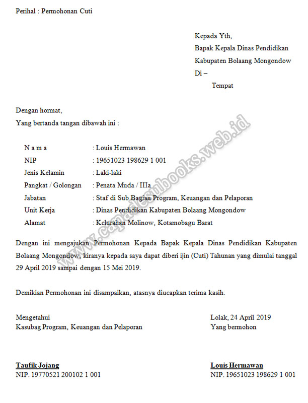 Contoh Surat Permohonan Cuti Tahunan Pns