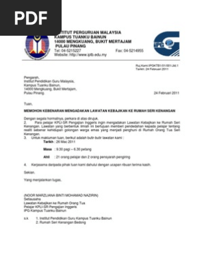 Contoh Surat Permohonan Kebenaran Lawatan Sambil Belajar