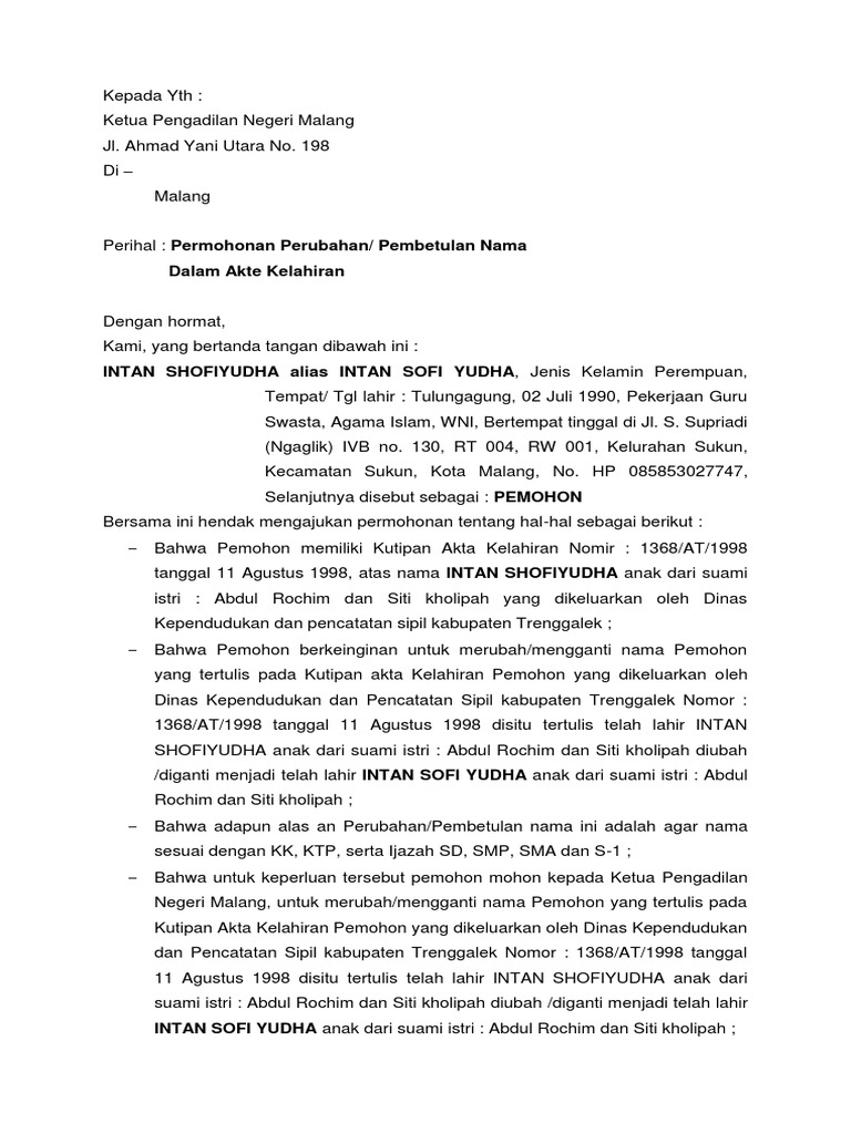 Contoh Surat Permohonan Pembatalan Akta Kelahiran Bagikan Contoh