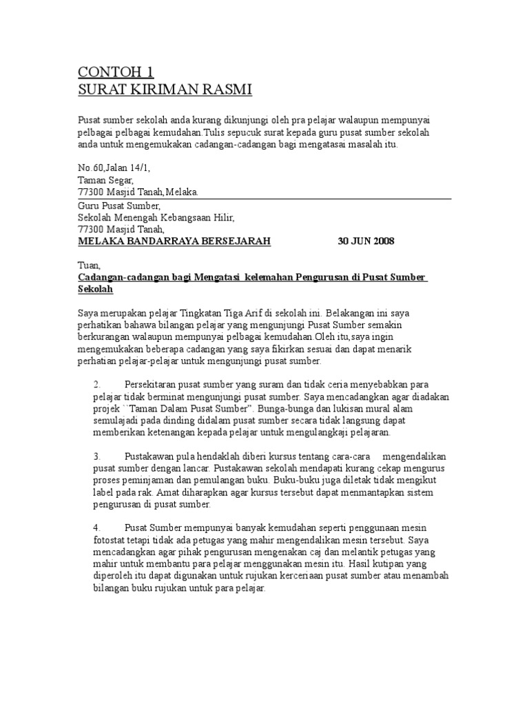 Surat Kiriman Rasmi Aduan Tentang Keadaan Kantin Sekolah Surat Rasmi D
