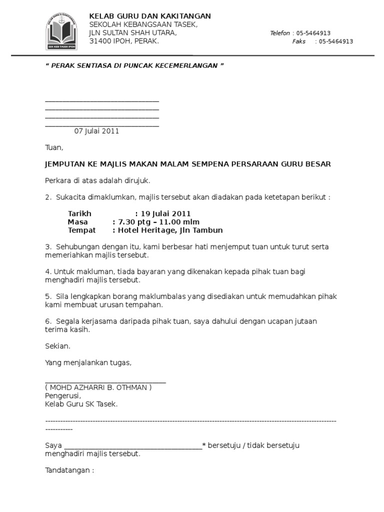 Contoh Surat Rasmi Jemputan Ke Program Surasmi G