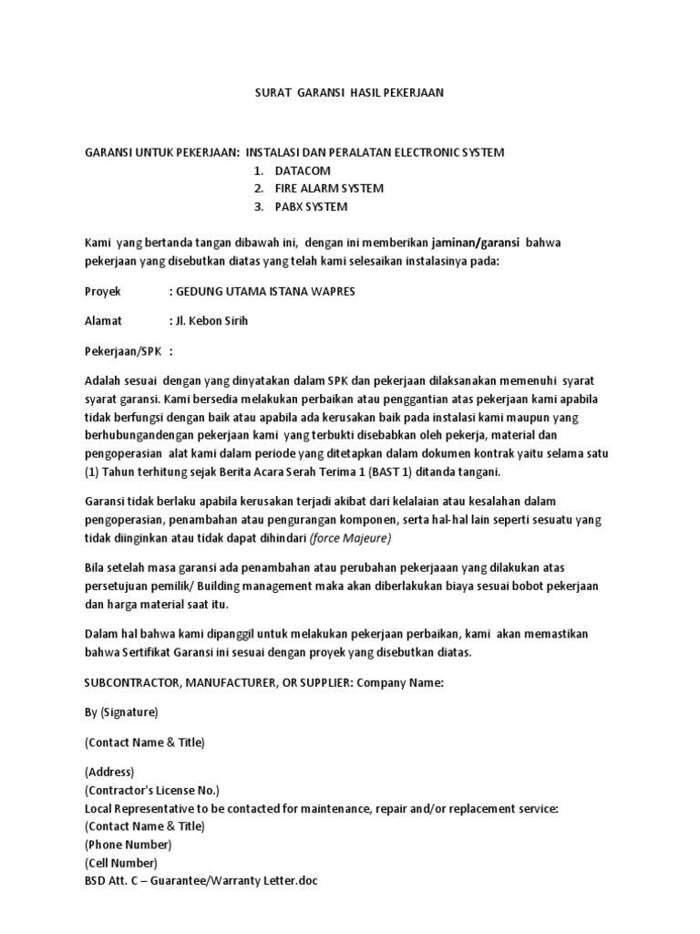 Surat Garansi Hasil Pekerjaan Docx