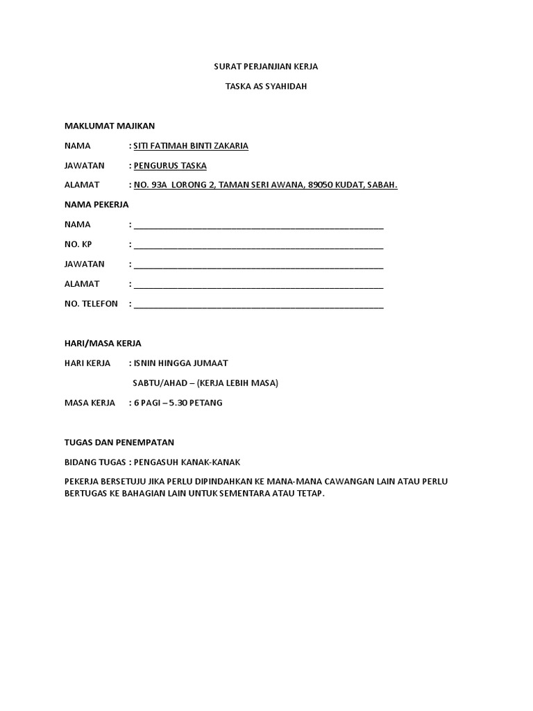 Doc Surat Tamat Kontrak Pembantu Rumah Ezzan Batrisyia Academia Edu